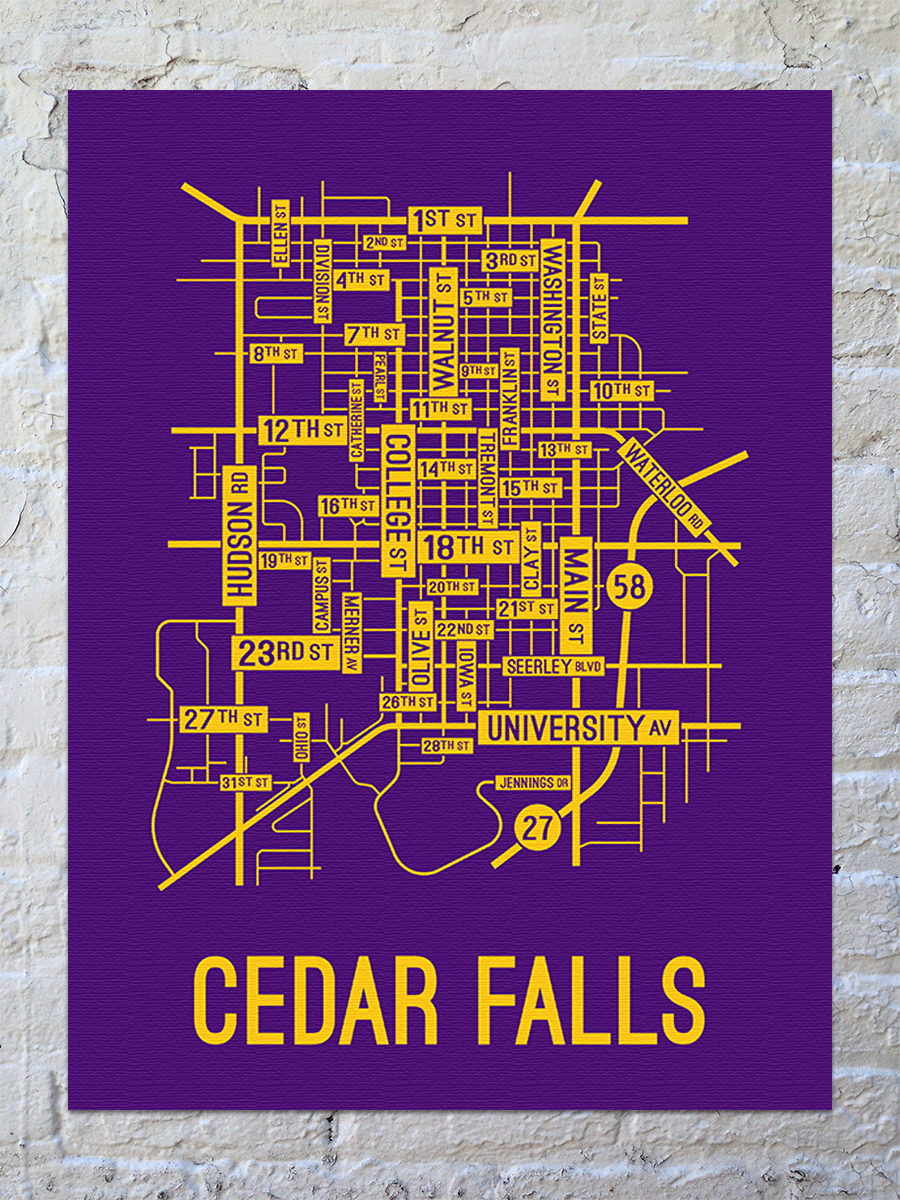 Cedar Falls, Iowa Street Map Canvas School Street Posters