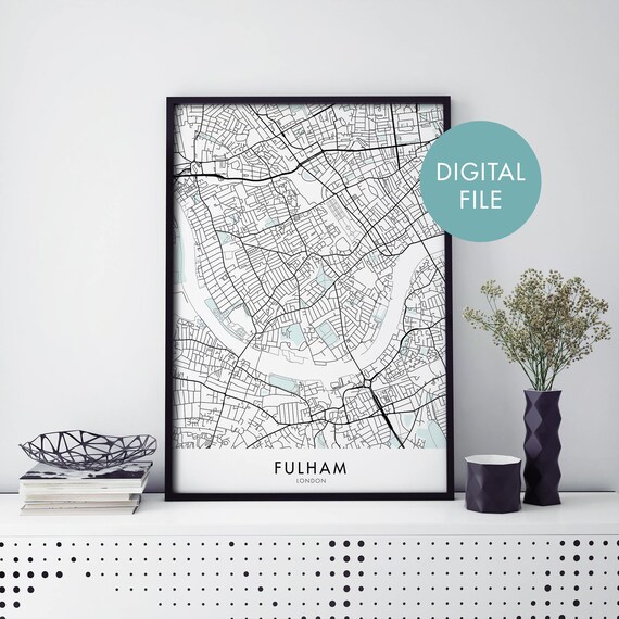 Buy FULHAM LONDON UK Map Prints Minimal Scandinavian Nordic Home
