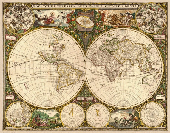 Antiguo mapa del mundo en 1660 por Frederik de Wit , Mapa vintage